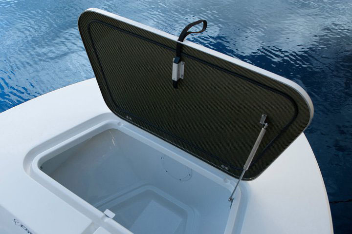 With a 16’7” LOA and 7’3” beam, this is the smallest boat in the fleet. The Egret 16 is a stable fishing platform with a better ride, more storage, and smaller footprint than most 18’ boats on the market. This boat is nimble and fast when powered by the Yamaha 115 SHO, seeing speeds in the low 50mph range and outstanding fuel economy.