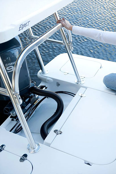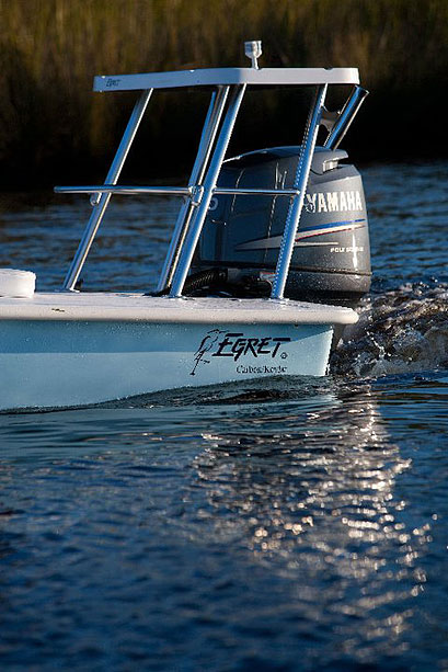 With a 16’7” LOA and 7’3” beam, this is the smallest boat in the fleet. The Egret 167 is a stable fishing platform with a better ride, more storage, and smaller footprint than most 18’ boats on the market. This boat is nimble and fast when powered by the Yamaha 115 SHO, seeing speeds in the low 50mph range and outstanding fuel economy.