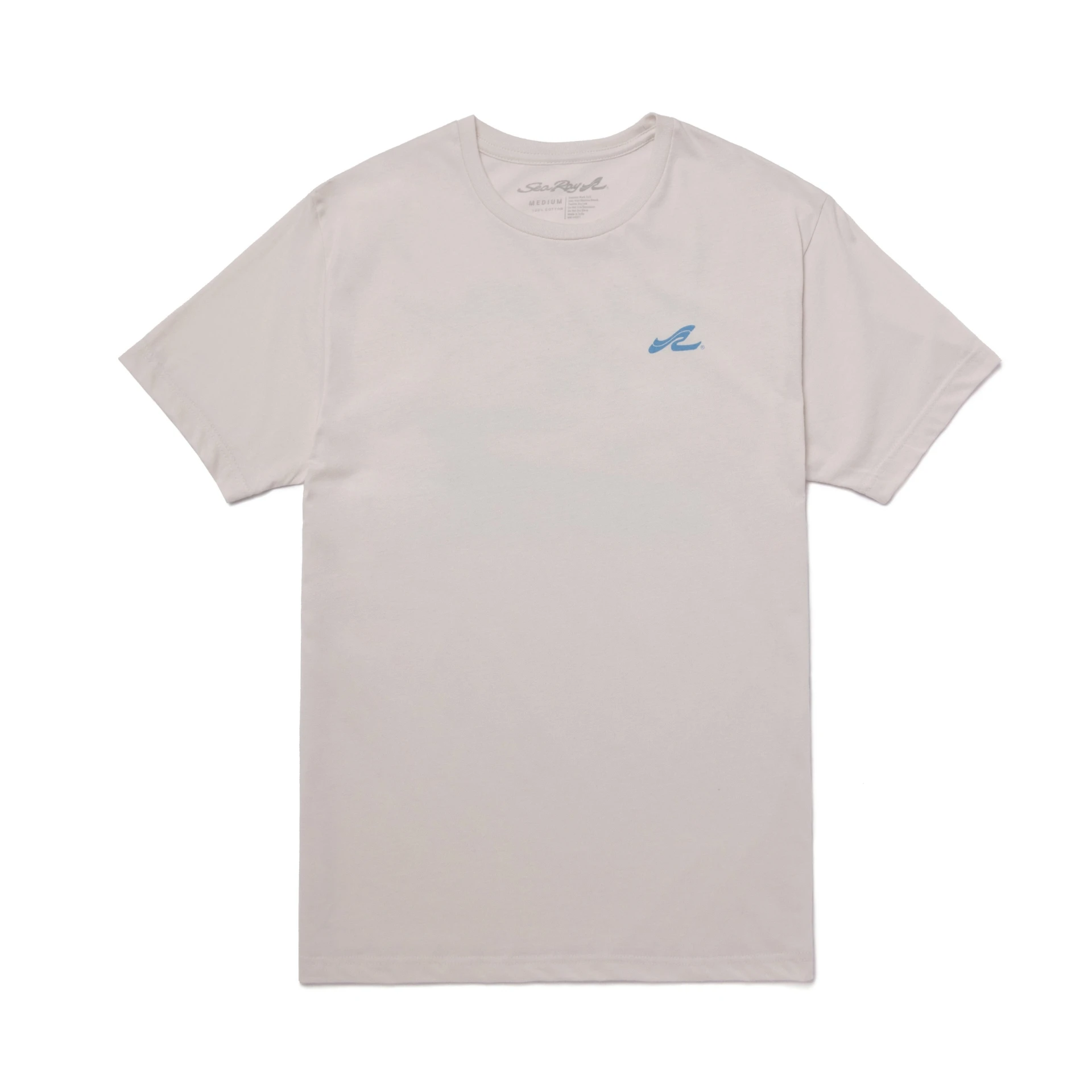 The classic white color provides a clean and fresh look, while the small logo on the left chest adds a subtle touch of branding. The bold full back graphic showcases the iconic Sea Ray design, making it a standout piece for any casual outfit.